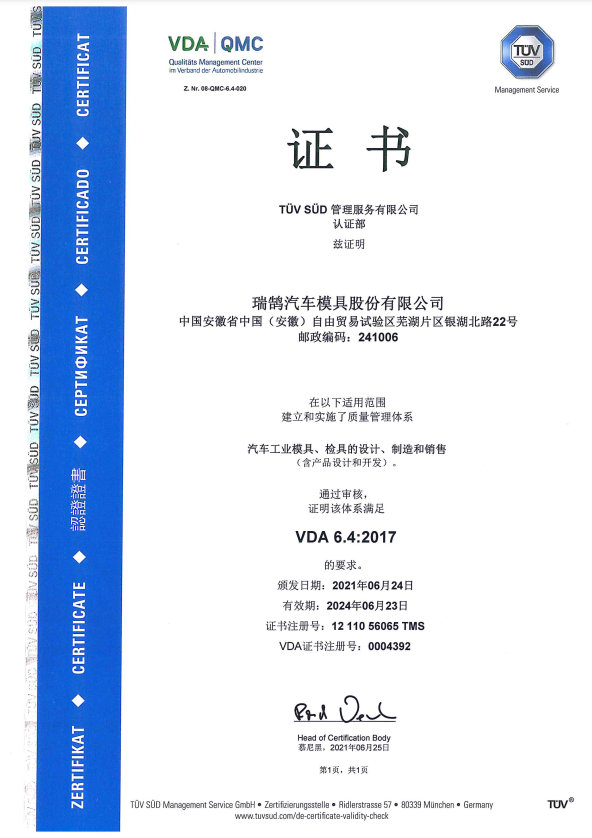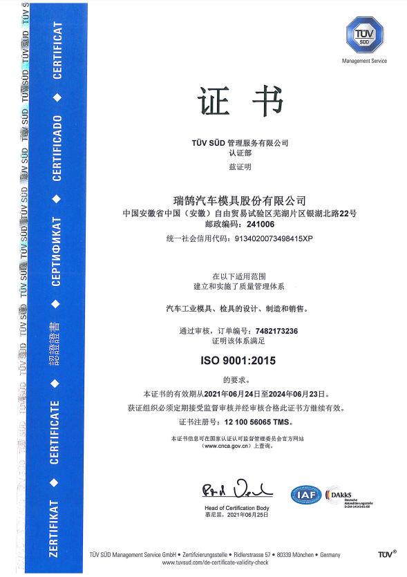 ????????瑞鵠汽車模具股份有限公司成立于2002年3月,坐落于中國(安徽)自由貿(mào)易試驗(yàn)區(qū)蕪湖片區(qū)銀湖北路 22 號,股本數(shù)18360萬,公司的主營業(yè)務(wù)為汽車沖壓模具、檢具及焊裝自動化生產(chǎn)線的開發(fā)、設(shè)計(jì)、制造和銷售,主要產(chǎn)品有沖壓模具(覆蓋件模具、高強(qiáng)板模具)及檢具、焊裝自動化生產(chǎn)線、一體化鋁壓鑄零部件,為國內(nèi)少數(shù)能夠同時為客戶提供完整的汽車白車身高端制造裝備、智能制造技術(shù)及整體解決方案的企業(yè)之一。